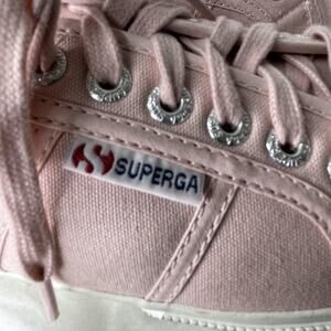 Branding: Superga logos on insole, heel, and side patch