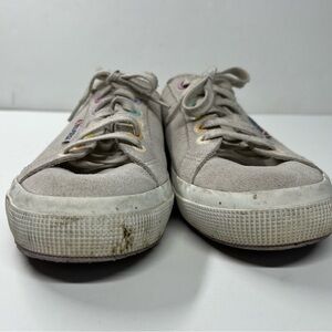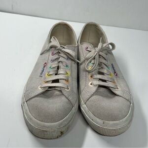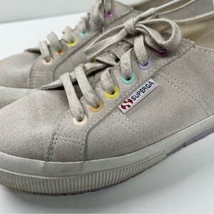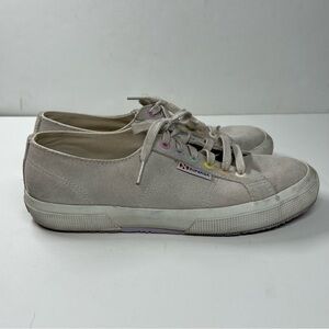 Superga Sneakers Gray Tan Suede Leather Lace Up Platform Shoes Casual Size 9