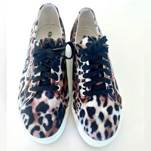 Superga Velvet Leopard Print Chunky Platform Lace-Up Sneakers Size 8.5