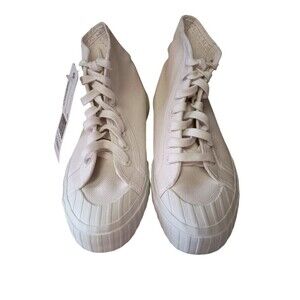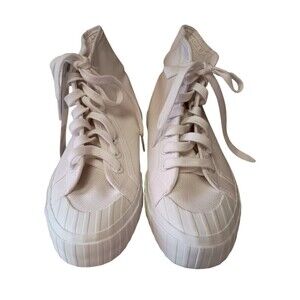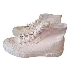 Superga Womens 6.5 Lace Up Platform High Top Sneakers White Canvas Italian