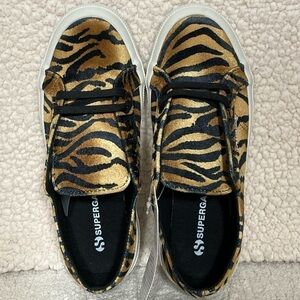 Superga Womens Animal Velvet Print Gold Fashion Sneakers Shoes. Color: Gold/Black. NEW WITH TAGS - NEVER WORN. No Rips or Tears. No Box. Smoke-Free.