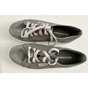 Superga Womens Size 37.5 Gray Canvas Platform Chunky Lace Up Sneakers Shoes US 7