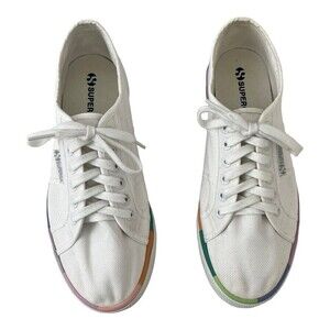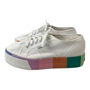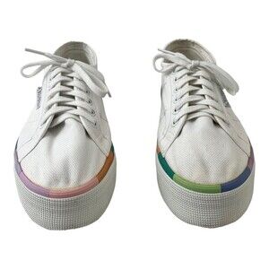 Superga Womens Size 39.5 US 8.5 White Rainbow Platform Sole Sneakers