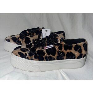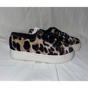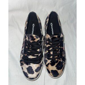Superga Women's Velvet Leopard Print Lace Up Tennis Shoes - Size 8.5
