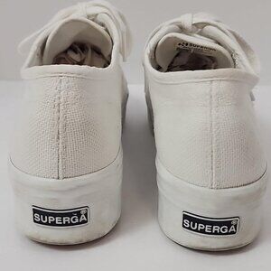 Superga Womens White Canvas Platform Sneakers, 4.5