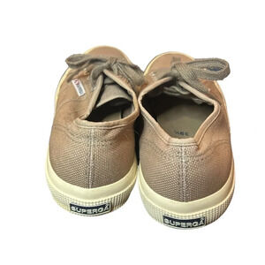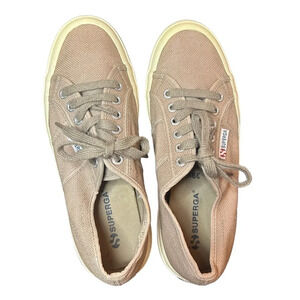 Superga tennis shoes. Tan canvas lace up. Perfect for casual wear! Good preowned condition. Some wear to the soles but lots of life left. Great Superga quality!