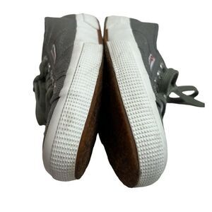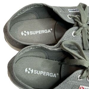 Superga gray cotu lace up low top sneakers size 7 women. Unisex- womens 7 mens 5.5. Canvas. Cushion footbed. Rubber crepe textured outsoles. Good condition.