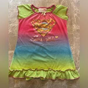 Supergirl Toddler Nightgown Rainbow Ombre “Invincible” Heart Logo Size 2T