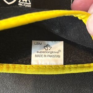Durable work gloves by Superior Glove. Features a white and black design with yellow accents. Ideal for protection and comfort.