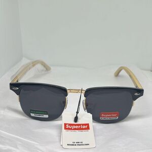 Elevate your eyewear game with these stylish Superior Optical Trends sunglasses featuring a classic clubmaster design and unique bamboo arms. Perfect for casual wear or outdoor adventures, they combine vintage-inspired frames with modern eye protection.