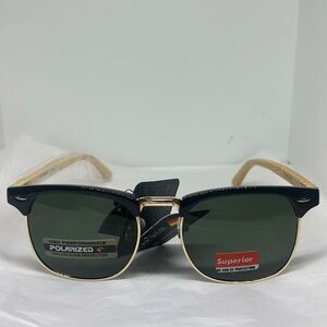 Upgrade your eyewear with these stylish Superior polarized sunglasses. Featuring a timeless clubmaster-inspired design, they combine a bold black and gold frame with UV400 polarized lenses for maximum glare reduction and eye protection. The lightweight arms with textured detailing provide comfort and durability, making them perfect for everyday wear.