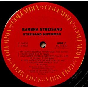 This is a rare 1977 LP vinyl record titled "Superman" by Barbra Streisand, released by Columbia. It features 33 RPM speed and a cardboard sleeve case type. The release title is "Superman" and it is in English language. The record is from the 1970s era and has a catalog number of JC34830. The LP comes with original cover, original inner sleeve, poster and lyrics. This is a must-have for any pop genre music collectors and vinyl record enthusiasts. Pre-owned (see pictures for item condition details).