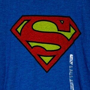 christmas gift, boy gift, dad gift, Superman shirt, DC Comics, superhero shirt, men's fashion, casual wear, blue shirt, crew neck, graphic tee, polyester blend, rayon blend, iconic logo, small size, short sleeve