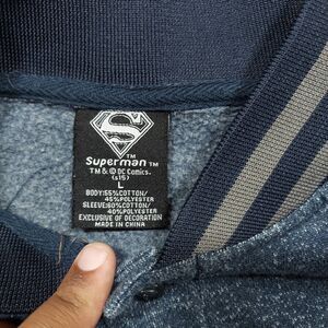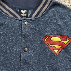 Superman DC Comics Jacket Large Blue Mens Varsity Logo Snap Button Lightweight