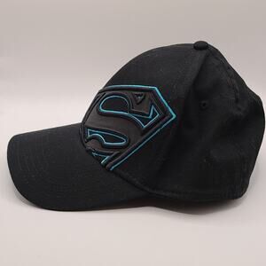 Superman Logo Mens Fitted Stretch Baseball Cap Hat Black Embroidered DC