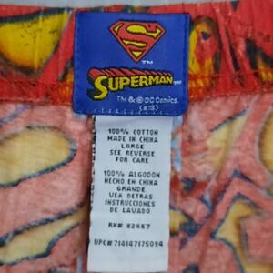 Men’s Superman lounge pants in size Large with a bold all-over logo print. Soft, breathable 100% cotton fabric. Licensed DC Comics tag.