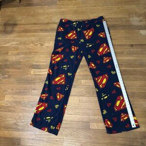 Superman Pajama Bottoms Men's XL Blue Soft Fleece All Over Logo Lounge Pants