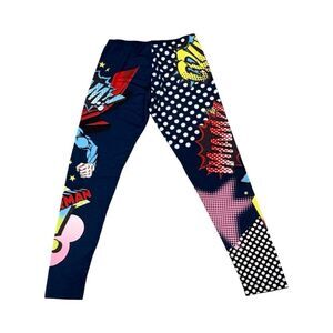 Superman set includes a superman top and superman leggings. Set shows signs of normal wash and wear; no damaged or stained fabric. Shirt is missing the cape. Shirt size: Juniors XL, leggings size: Juniors M (7-8).