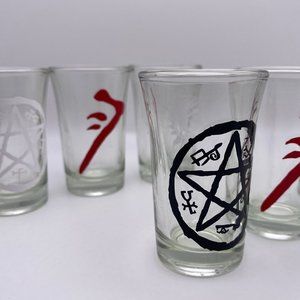 1.5 oz shot glasses that come in a set of 3. I make sets to order.