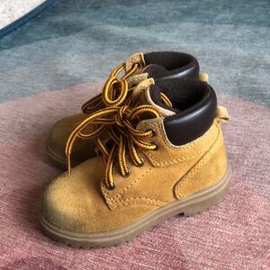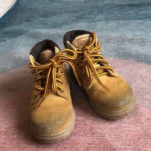 super cute good pre loved condition size 7, neutral tan suede, smart fit, non skid, arch support, lace up, perfect for out doors, farm life, or a photo shoot