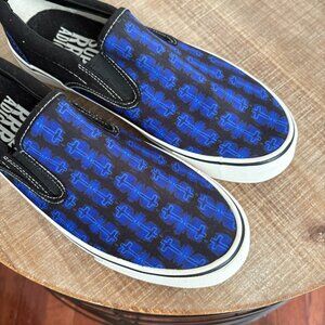 Superradical Men's Size 8 Cross Print Slip On Sneakers Black Canvas Shoes