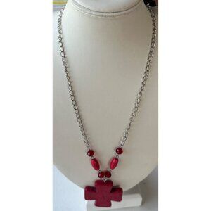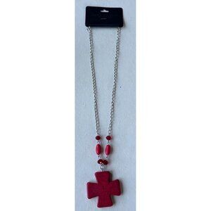 Superstar Accessories Fashion Jewelry Red Beaded Necklace w/Cross (NEW)