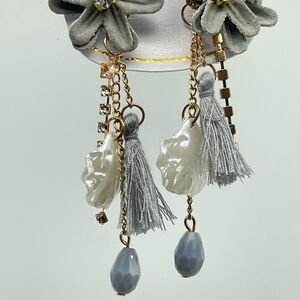 Superstar Accessories Women’s Blue Silver Seashell Rhinestone Tassel Floral Drop Dangle Earrings