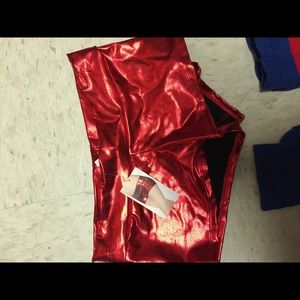 Blue/Red. Size S/M brand new, never worn. Corset top, shorts, and knee high socks