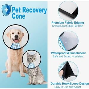 HIGH QUALITY MATERIAL: Made of high quality PVC material, extra soft fabric edge provides your pet additional comfort and protection, durable and healthy, this pet recovery collar is light enough which never make your lovely pets get tired. And it's easy to clean!