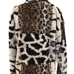 Supply & Demand Animal Print Sherpa Furry Jacket Cardigan Front Button sz S