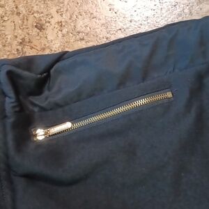 Supply & Demand Men's Moto Style Blsck Joggers with Gold hardware and patch. Features an elastic waist with drawstring, two front zip pockets, two side velcro closure pockets, ribbed insets, and elastic cuffs. Made of 52% cotton and 48% polyester. Waist measures 16 inches laying flat, with a 12.5-inch rise and 29.5-inch inseam. No wear and no flaws - like new.