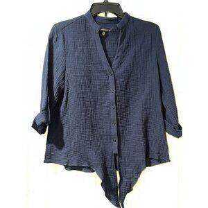 Supply and Demand 3/4 sleeve top gauze Cotton womans Blouse Blue Size M