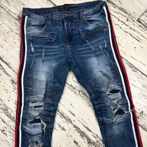 Supply and demand jeans men’s 38W-XXL distressed grunge stretch zipper pockets