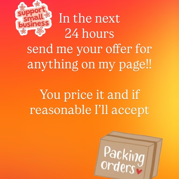 Vibrant orange and red poster with supportive message for small businesses. For the next 24 hours I will be accepting reasonable offers.