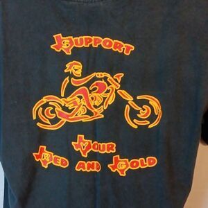 This faded black short sleeve Support Your Red and Gold men's tee is a size XL with a pit to pit measuring 24" and a length of 30". In excellent condition. All offers are welcome.