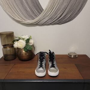 Supra Muska 001 Silver High Top Skate Shoe Sz 4. Excellent, pre-owned condition.