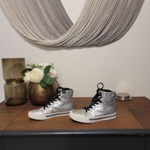 Supra Muska 001 Silver High Top Skate Shoe Sz 4