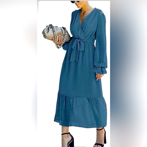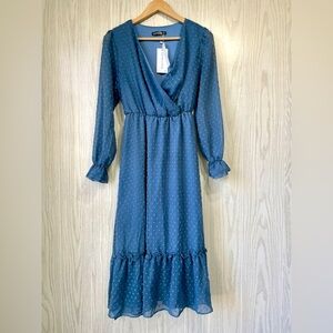 Suprelook Casual Dresses Long Sleeve Wrap V Neck Swiss Dot Print Bohemian Swing Size Large Lake Blue NWT