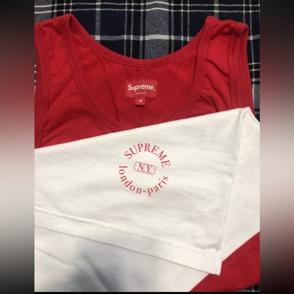 Hey y’all, here is a Medium Supreme Tank Top got it last summer so here it is I had my fun with it 😅 feel free to ask a question or two 💯 comes with bag n sticker👌🏼