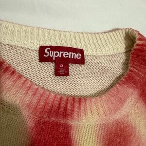 Bold Supreme sweater with a striking red and cream gradient. Ideal for standout style.