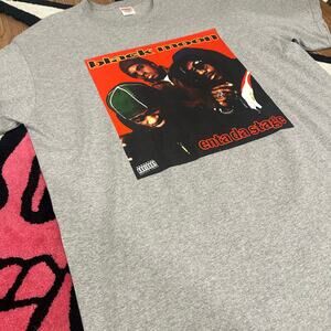 Supreme’s Enta Da Stage Tee from FW22 delivers a clean Heather Grey base with a bold front graphic—easy to wear and a solid pickup for Supreme collectors and everyday fits alike. A classic Supreme short-sleeve from a strong late-season drop, great for rotation or archiving. Ships securely and fast.