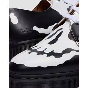 Details: • Dr. Martens x Supreme 1461 3-Eye Shoe • Black/white skull graphic design • Men’s size 10 • Brand new in box • Classic Docs sole and welt stitching