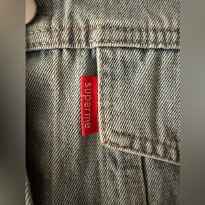 This Supreme jacket is in like new condition. Features fringe on the back, and both arms, and a light wash. Such a fun piece to add to any wardrobe