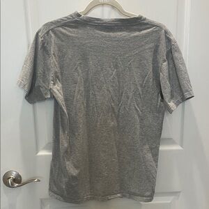 Gray tee featuring a vibrant graphic with a purple umbrella and yellow raincoat. Bold Supreme logo below.