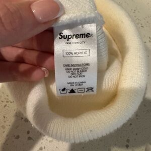 Stylish Supreme beanie for kids. Soft and cozy. Features Paris embroidery.