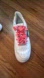 Trendy Supreme sneakers for kids. White base with striking red laces. Ideal for casual outings.