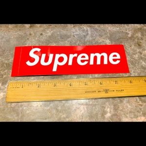 Authentic Supreme logo sticker in red and white. Ordered from official Supreme website. Approximately 8 inches long. Will discount if another item from my closet is purchased.