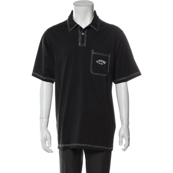 Supreme Mens Polo Shirt Black Short Sleeve Pocket Spell Out 100% Cotton M New