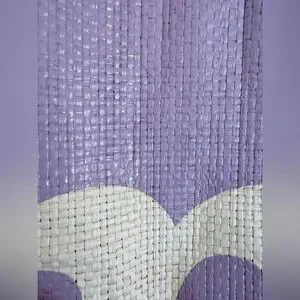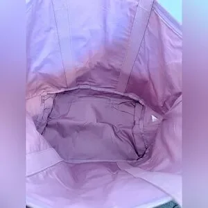 Bold cream logo across a lavender canvas body. Dual shoulder straps and reinforced base. Simple, eye-catching branding. Practical for daily use.