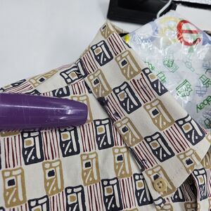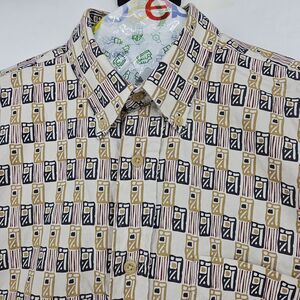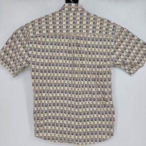 Supreme Shirt Mens Medium Tan Black Abstract Print Button Up Short Sleeve Cotton